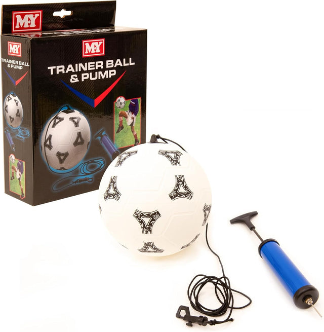 Includes: Soccer ball on elastic trainer leash and a football pump.
